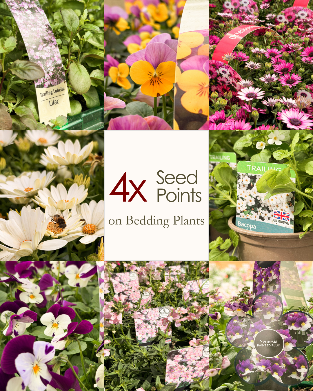 This week, you can earn 4x Seed Points on all bedding plant purchases, that’s 8 points for every £1 you spend (1 point = 1p).